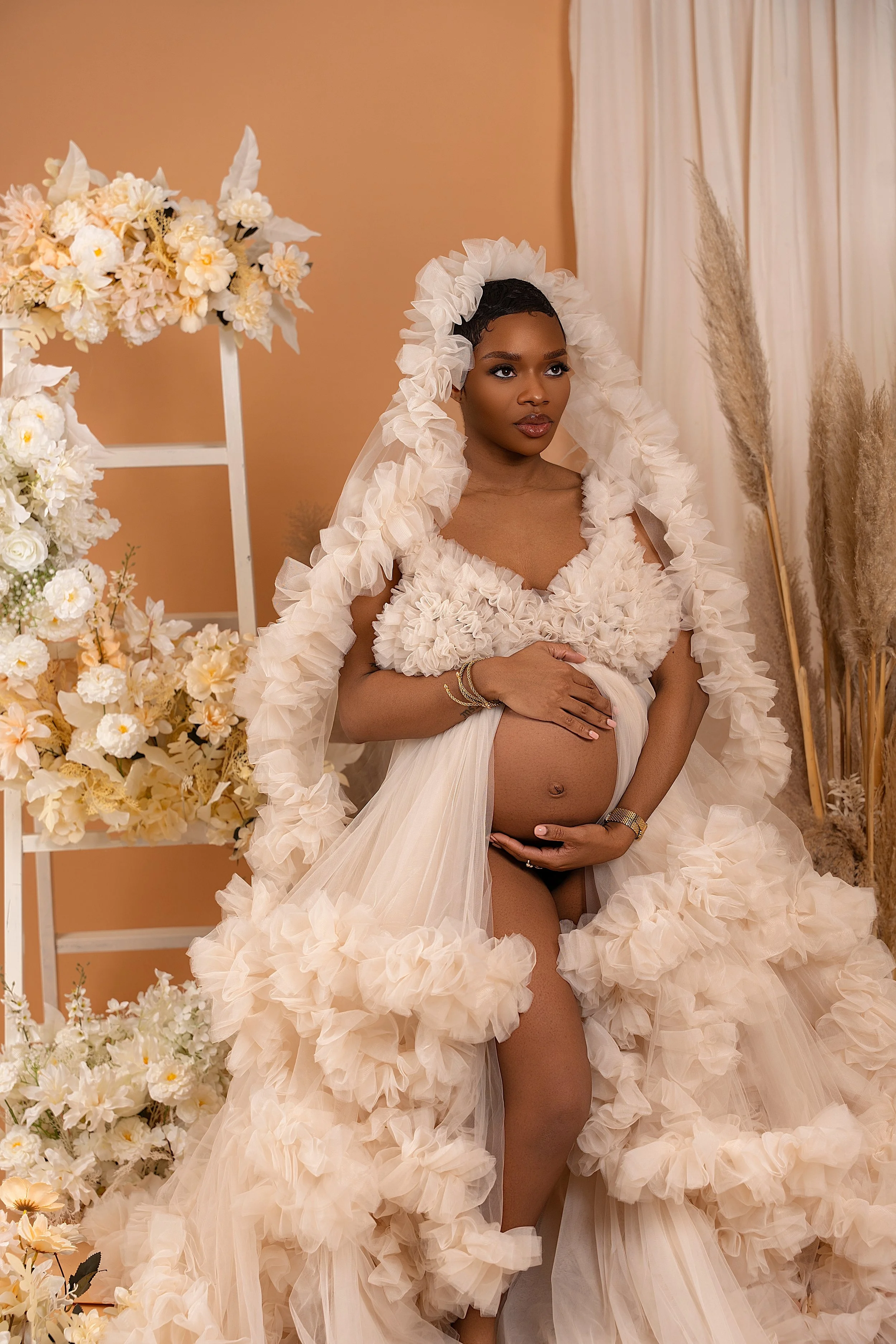 A calm and intimate session celebrating your pregnancy, focusing on soft emotions and natural beauty.